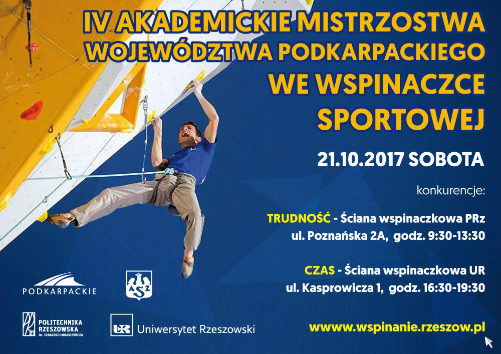 21 października odbędą się IV Akademickie Mistrzostwa Województwa Podkarpackiego we wspinaczce sportowej.