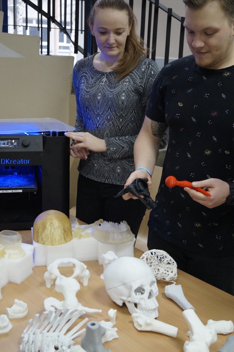 Wydruki 3D, od projektu 3D do gotowego modelu fizycznego są realizowane przez samych studentów pod okiem pracowników Katedry Inżynierii Medycznej.