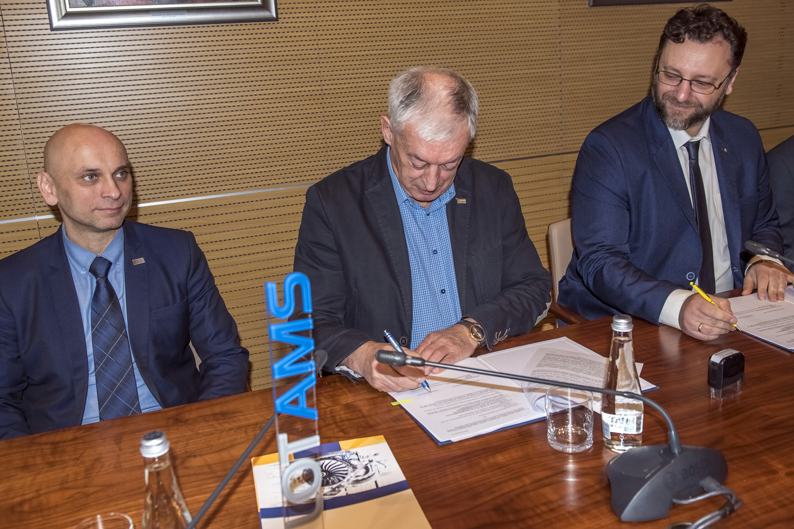 Umowę podpisali prof. dr hab. inż. Tadeusz Markowski, Rektor Politechniki Rzeszowskiej i Marcin Kwietniak, Dyrektor Biura Marketingu w LOT Aircraft Maintenance Services Sp. z o.o.
