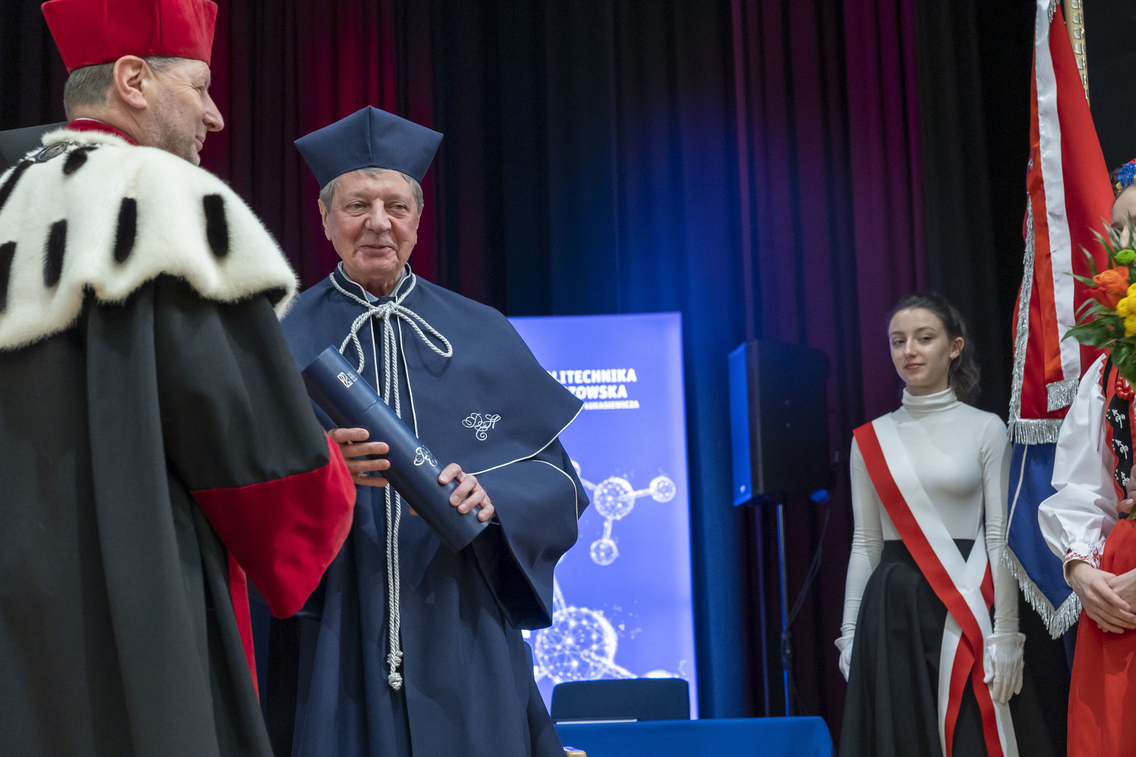 Rektor prof. Piotr Koszelnik w asyście promotora prof. Pawła Chmielarza i dziekan Wydziału Chemicznego prof. Doroty Antos wręczył dyplom doktorowi honoris causa Politechniki Rzeszowskiej prof. Krzysztofowi Matyjaszewskiemu, tym samym nadał mu tytuł doktora honoris causa oraz wszystkie związane z nim przywileje. Doktor honoris causa dokonał wpisu do Albumu Doktorów Honoris Causa Politechniki Rzeszowskiej, a następnie wygłosił wykład.