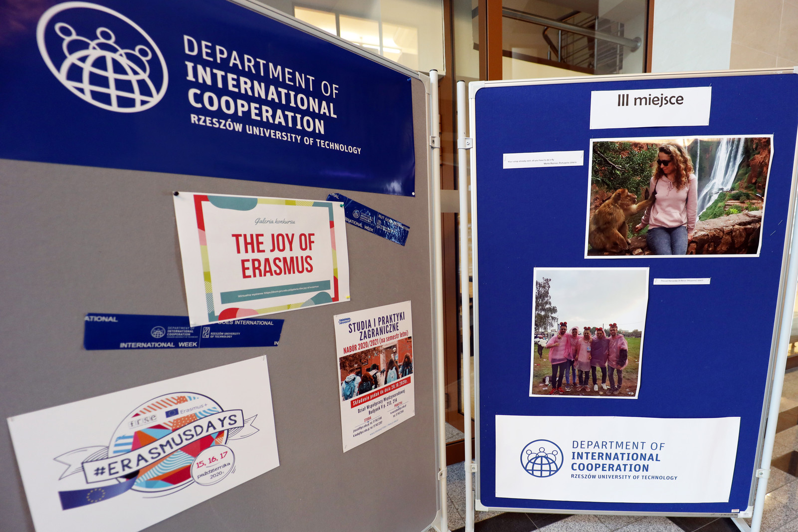 W budynku V przy al. Powstańców Warszawy 12 zorganizowano wystawę prac nadesłanych do konkursu, która została przygotowana w ramach obchodów #ERASMUSDAYS 2020. Prace można obejrzeć do 23 października 2020 r. lub wirtualnie na stronie: https://dwm.prz.edu.pl/galeria-the-joy-of-erasmus.